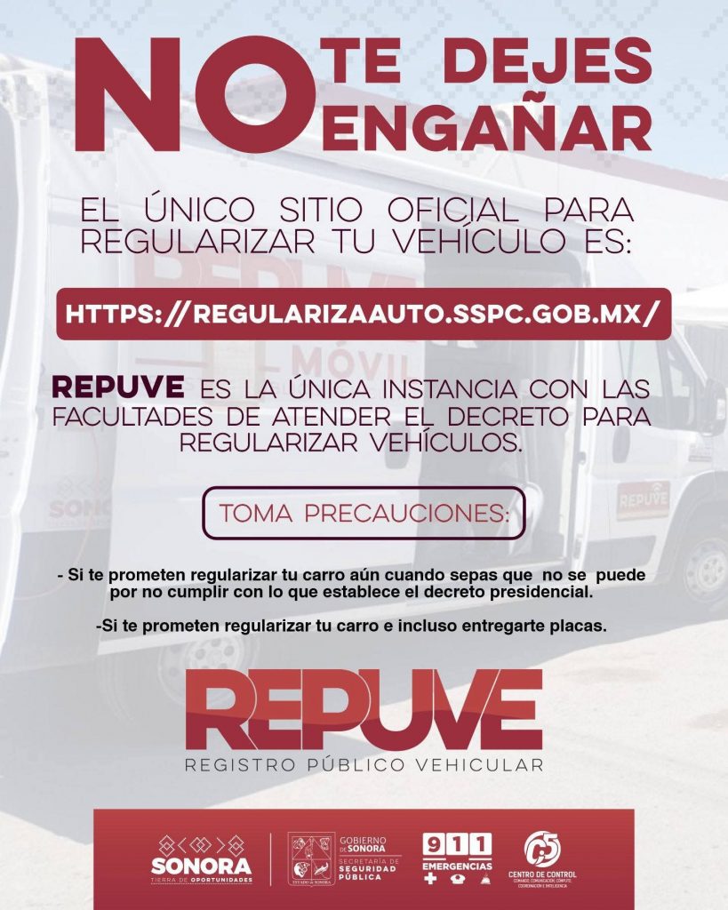 La SSP Sonora te informa de tener cuidado con las Páginas apócrifas que ofrecen apoyar a las y los ciudadanos con el proceso de regularización de vehículos usados de procedencia extranjera… ¡ NO CAIGAS!