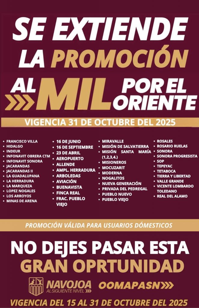 Por ordenes del Presidente Municipal Jorge Alberto Elías Retes, y en apoyo a la economía de las familias navojoenses, Oomapas Navojoa extiende la vigencia para que aproveches esta gran oportunidad.