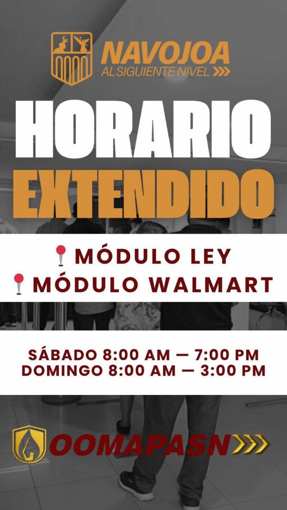Oomapas Navojoa informa que este fin de semana trabajará con horario extendido en sus módulos para que realices tus pagos sin complicaciones.