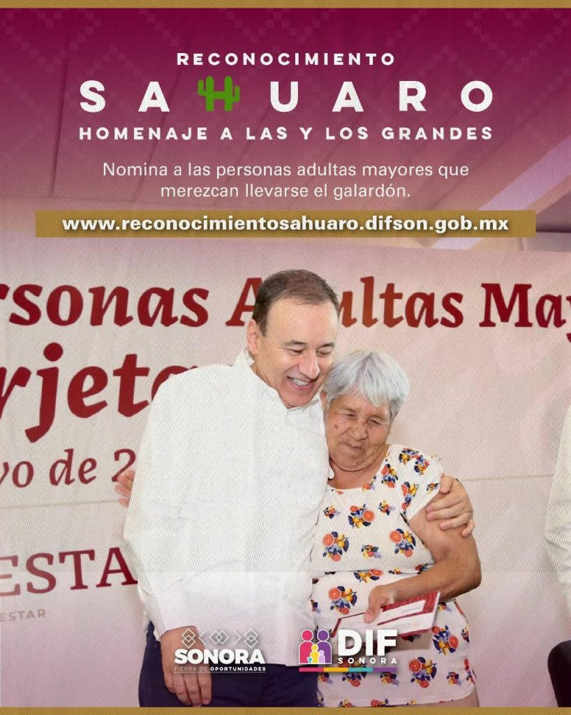 ADULTO MAYOR ESTATAL PRINCIPAL El Gobierno del Estado de Sonora informa que 🧓 ¡Hoy es el último día para participar! Nomina a una persona adulta mayor que conozcas con trayectoria al Reconocimiento Sahuaro 2025. luis diaz llamita agosto 8, 2025 Regístrala en ➡️ reconocimientosahuaro.difson.gob.mx SeguimosTransformando #TierraDeOportunidades Continue Reading Previous Previous post: 💧 Trabajamos para restablecer el servicio 💧Next Next post: Inicia pavimentación y rehabilitación de redes hidráulicas en Bacobampo Deja un comentario Cancelar respuestaTu dirección de correo electrónico no será publicada. Los campos obligatorios están marcados con *Comentario * Nombre * Correo electrónico * Web Guardar mi nombre, correo electrónico y sitio web en este navegador para la próxima vez que haga un comentario.