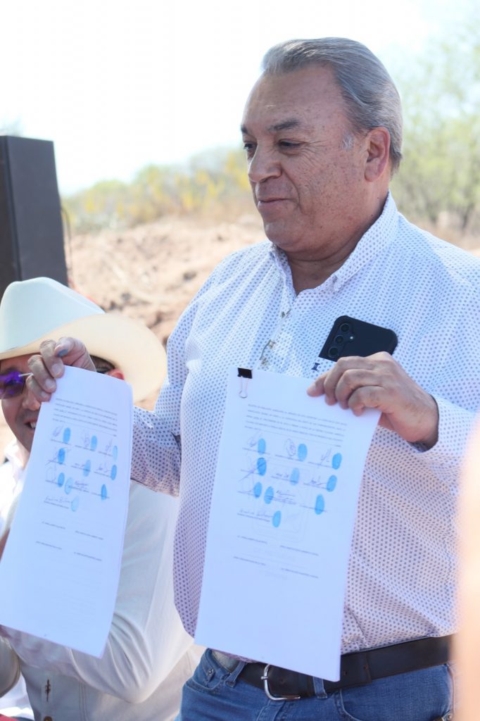 Navojoa, Sonora, 5 de marzo 2026.- La adquisición legal de 47 hectáreas de terreno para la construcción de las 4 mil 500 Viviendas del Bienestar quedó concretada, este jueves, teniendo como testigos especiales a Fernando Rojo de la Vega, titular de la Secretaría de Bienestar del Estado de Sonora y el alcalde Jorge Alberto Elías Retes, quienes calificaron este avance como histórico para el municipio.