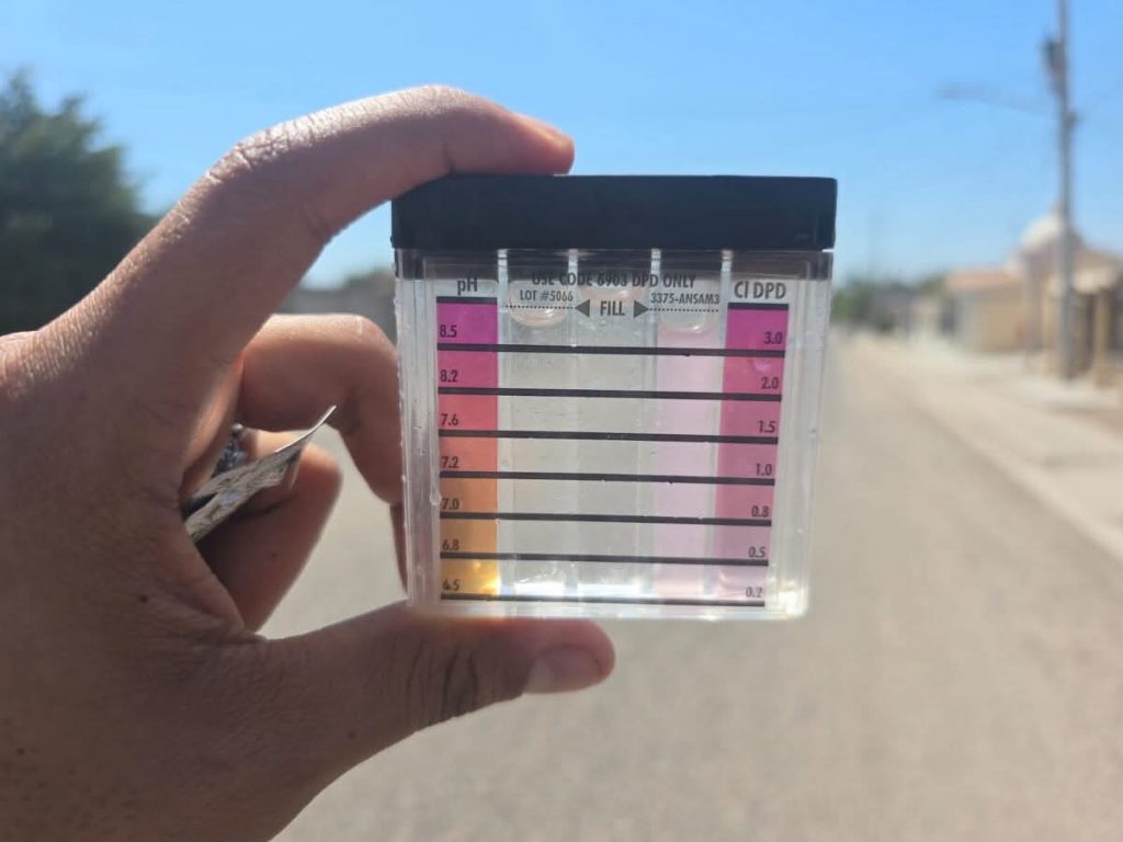 Navojoa, Son.- Con el objetivo de garantizar la calidad del agua que llega a los hogares, el departamento de Control de Calidad de Oomapas Navojoa mantiene un monitoreo constante de los niveles de cloro residual en distintos puntos de la ciudad.