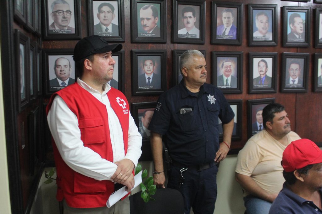 Etchojoa, Son.- Con el compromiso de salvaguardar la seguridad de las familias etchojoenses ante los posibles efectos de la Tormenta Tropical ‘Lorena’, el alcalde Ing. Luis Arturo Robles Higuera sostuvo una reunión estratégica con representantes de los Módulos de Riego 2, 3, 8, 10, 15, K-91 y Santini 2, así como con integrantes de la Unión de Camioneros de Bacobampo, Buaysiacobe, Bacame, Basconcobe, Las Playitas y Etchojoa.
