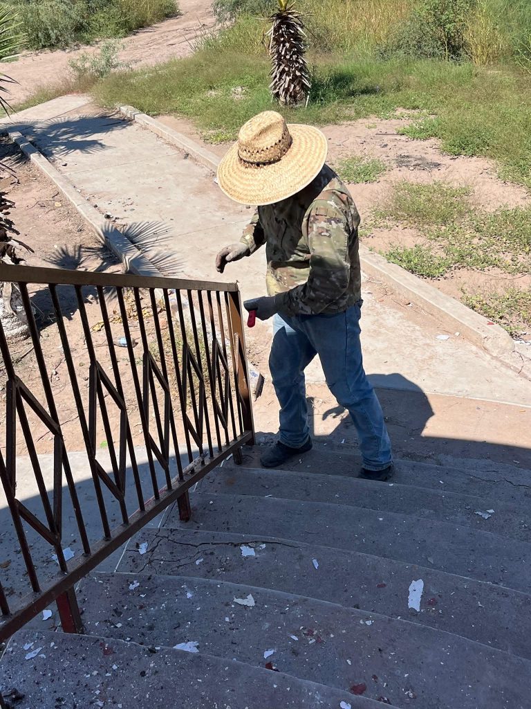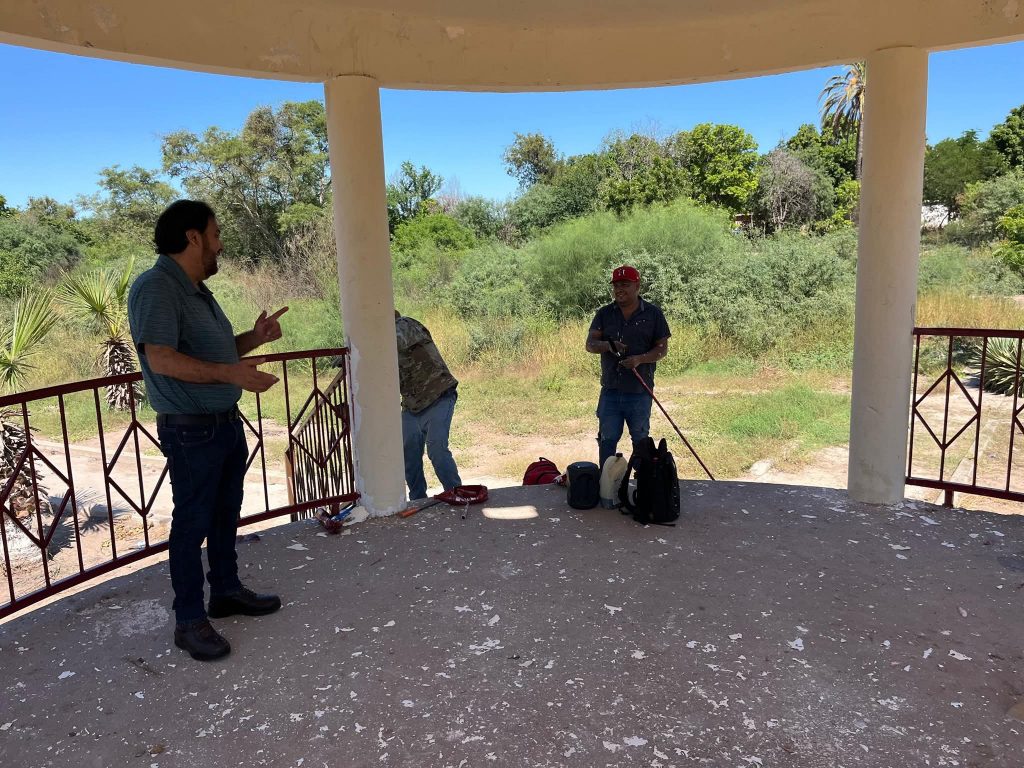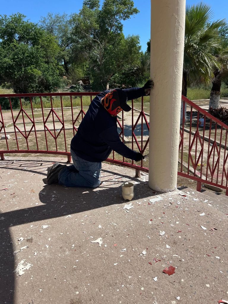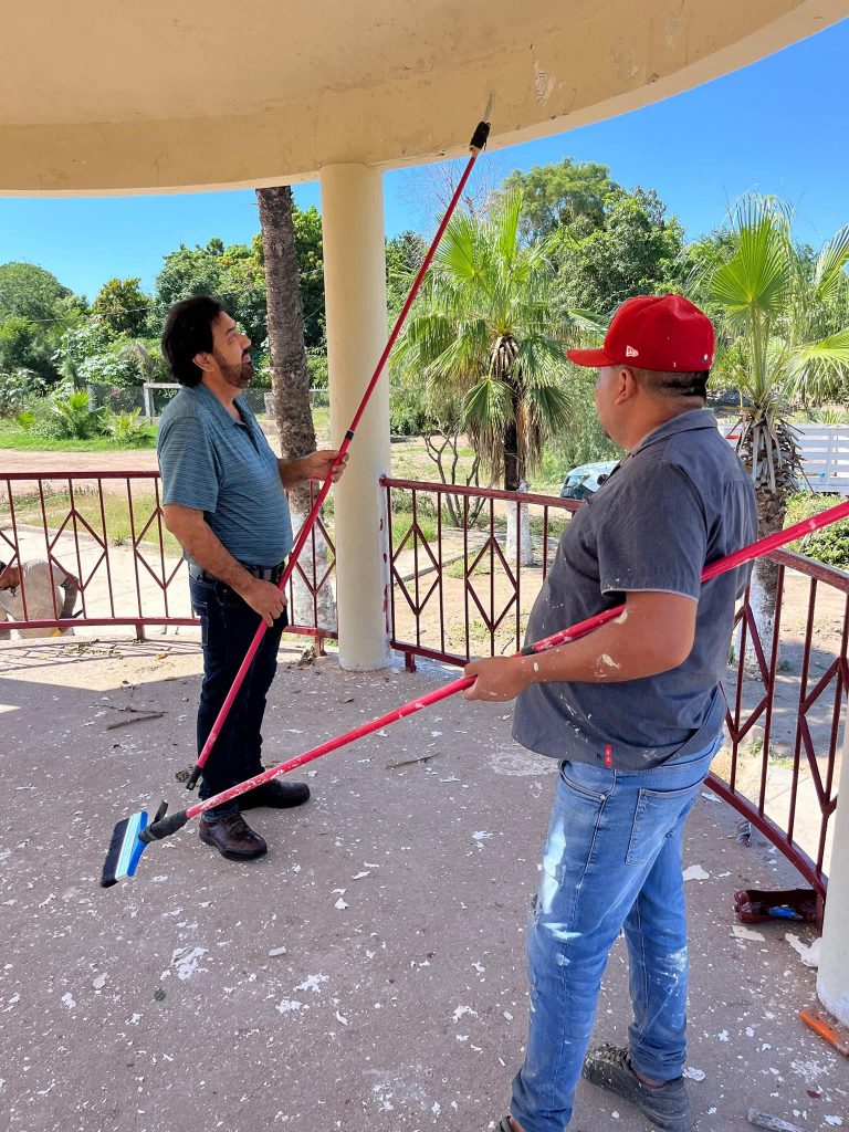 Etchojoa, Son.- El Alcalde de Etchojoa, Ing. Luis Arturo Robles Higuera, se unió este día al personal de Servicios Públicos Municipales y a un grupo de ciudadanos comprometidos con su comunidad, para participar en las labores de rescate del quiosco y la cancha de la Comisaria De Basconcobe.