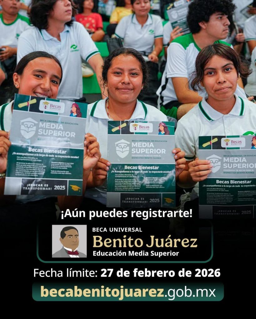 Este viernes 27 de febrero es el último día para registrarte a la #beca #BenitoJuárez de Educación Media Superior. 🪙🏃🏻♀️