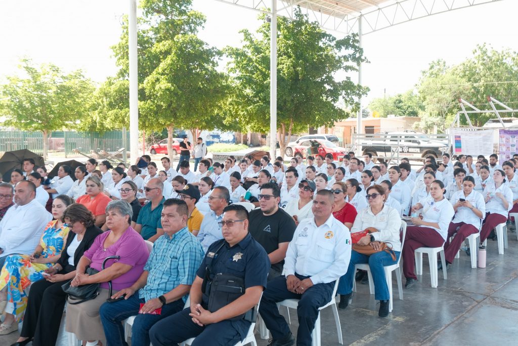 Estuvieron presentes en el evento, la presidenta de DIF Huatabampo, Andrea Cota Murillo; el secretario del H. Ayuntamiento, Francisco Javier Díaz Quijano; la síndica procuradora, María Antonieta Gutiérrez Verdugo; la jefa de la carrera de Enfermería de la UES, Jesús Marlene Armenta Valenzuela y la responsable de práctica, Lourdes Candelaria Alcántar Elizalde.