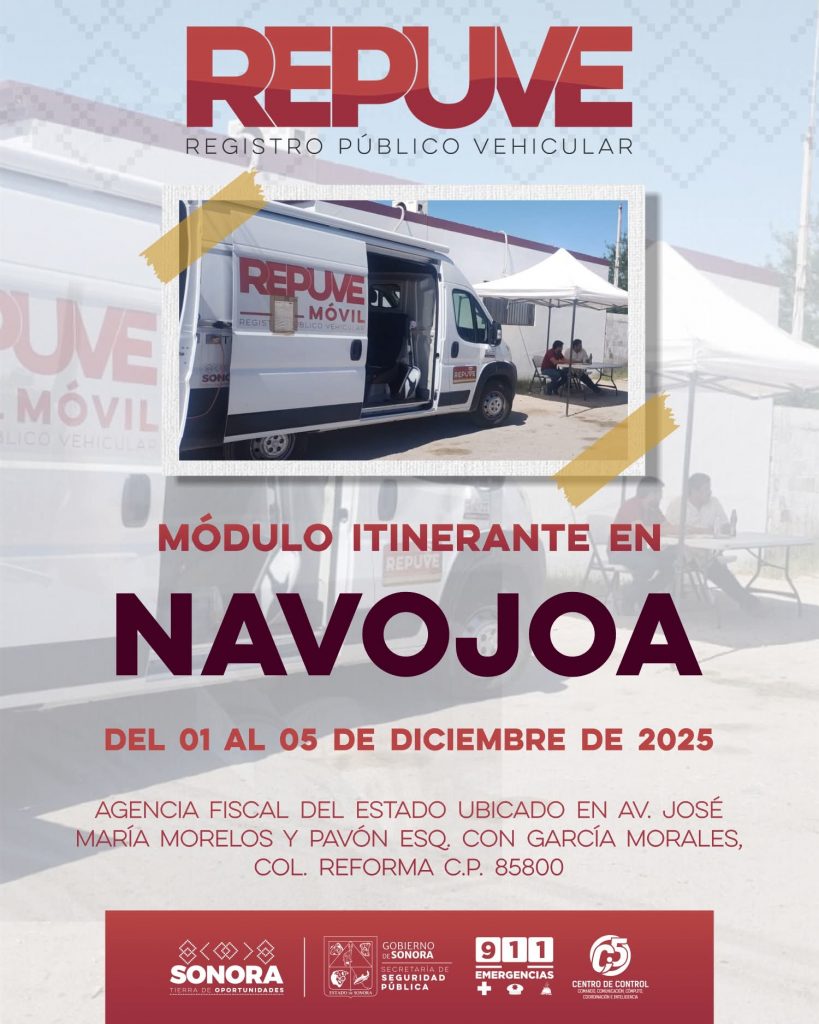 SSP Sonora te informa que el módulo itinerante de Repuve esta en #Navojoa 🚗