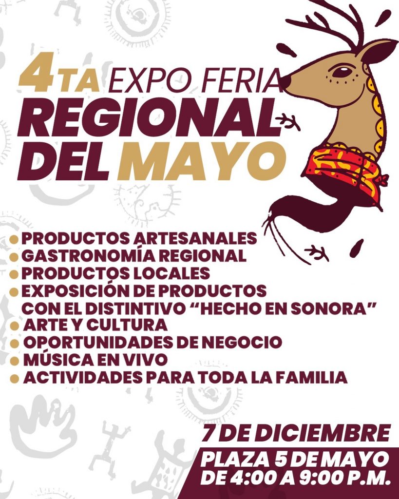 Navojoa, Sonora; a 01 de diciembre de 2025. Con el objetivo de fortalecer la economía local y regional impulsando productos artesanales, gastronómicos y culturales que reflejan la identidad y el talento de nuestra gente, el Gobierno Municipal de Navojoa, a través de la Secretaría de Desarrollo Económico Municipal, anunció la realización de la 4ta Expo Feria Regional del Mayo,