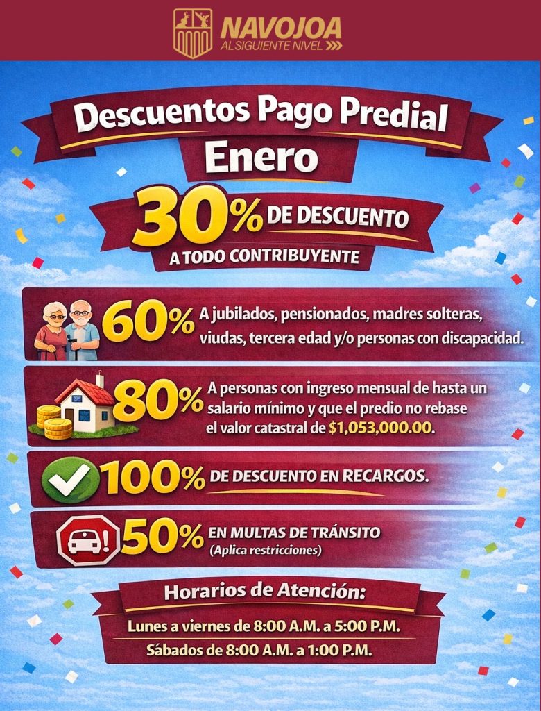 *El Municipio de Navojoa te ofrece grandes promociones en predial y multas de tránsito.