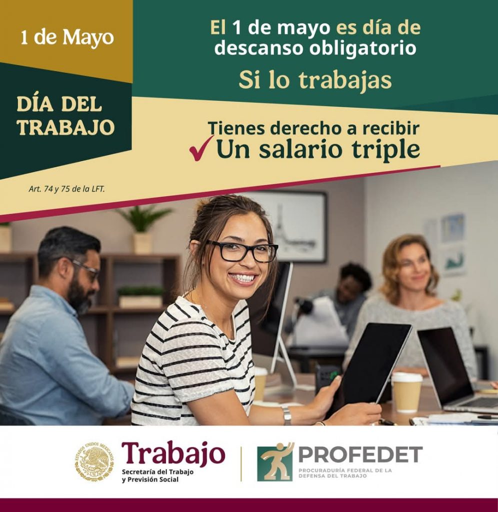 PROFEDET te informa que el 1 de mayo está establecido en la Ley Federal del Trabajo como descanso obligatorio.