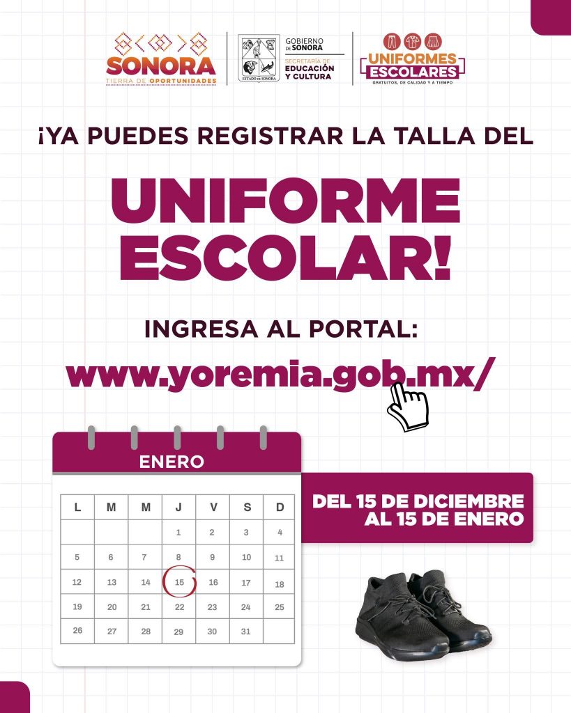 🟠 La Secretaría de Educación y Cultura les informa que ya pueden registrar la talla del uniforme escolar!👕📏