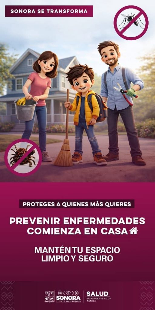 Sonora; 14 de abril de 2026.- Eliminar la maleza, limpiar el patio, voltear recipientes y tapar aquellos que contengan agua, ayudan a prevenir el #Dengue y otras enfermedades.
