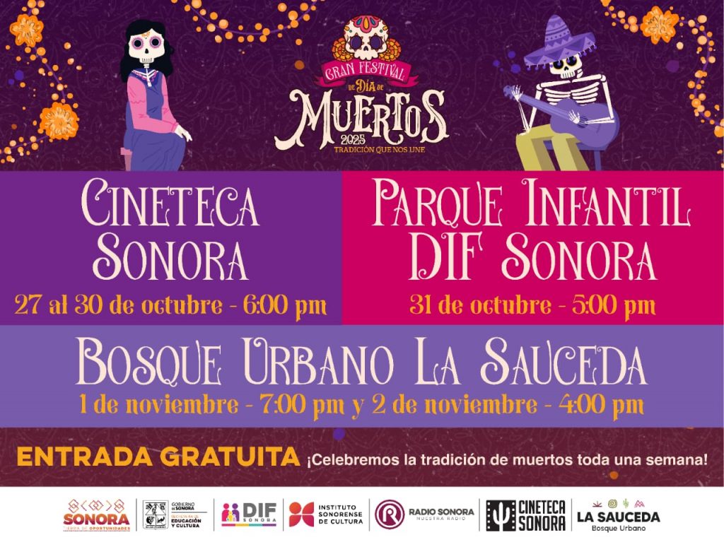 Sonora; 21 de octubre de 2025.- Se acerca el día de muertos, por ello no dejes de participar ni te pierdas las grandes actividades que tienen preparadas el Gobierno del Estado de Sonora, la Secretaría de Educación y Cultura, y el Instituto Sonorense de Cultura.