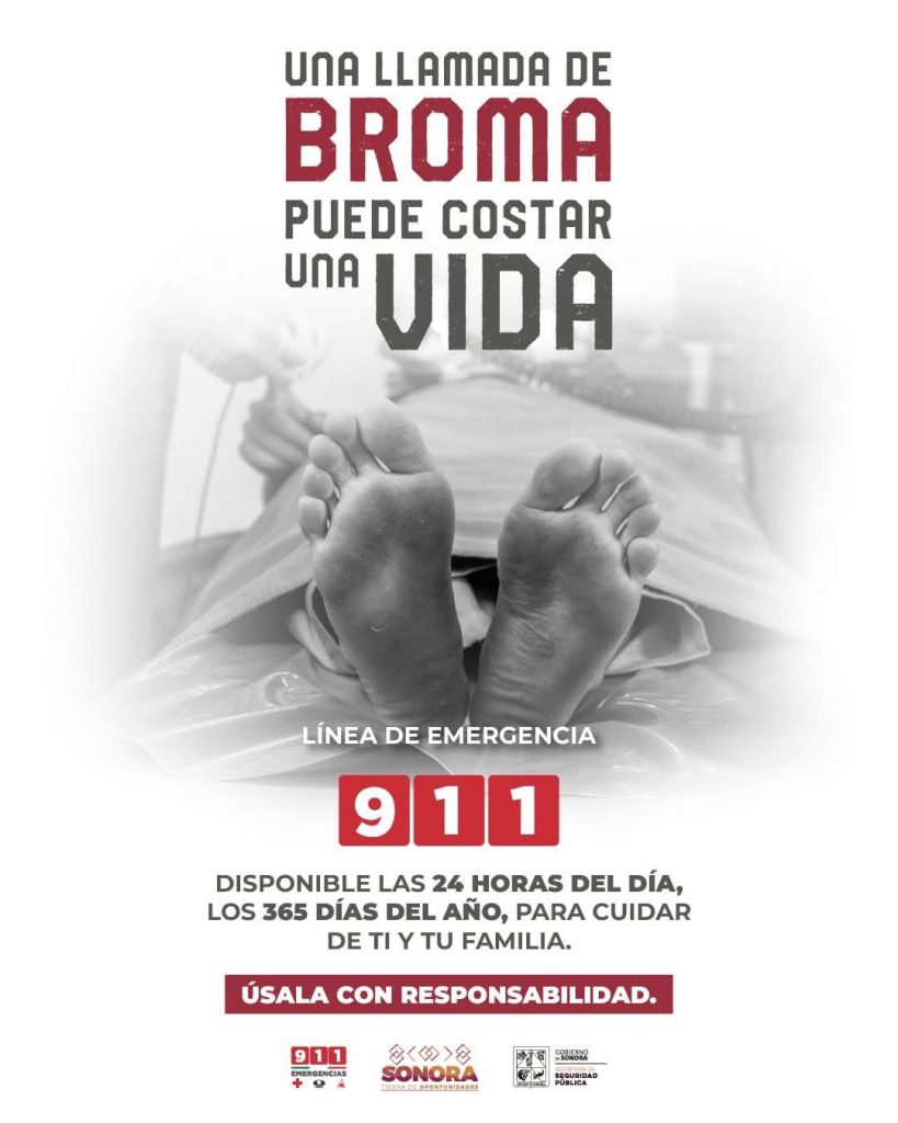 Sonora; 24 de enero de 2025.- Hace buen uso del 911 nos ayuda a todos; no realir llamadas de broma salva vidas.