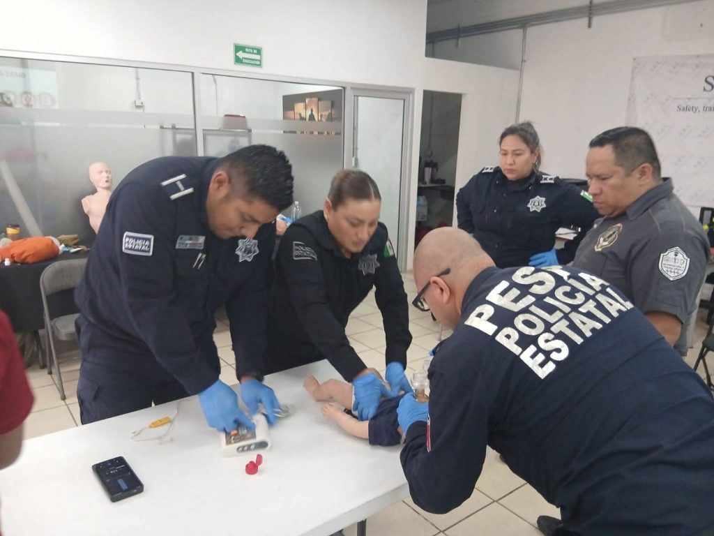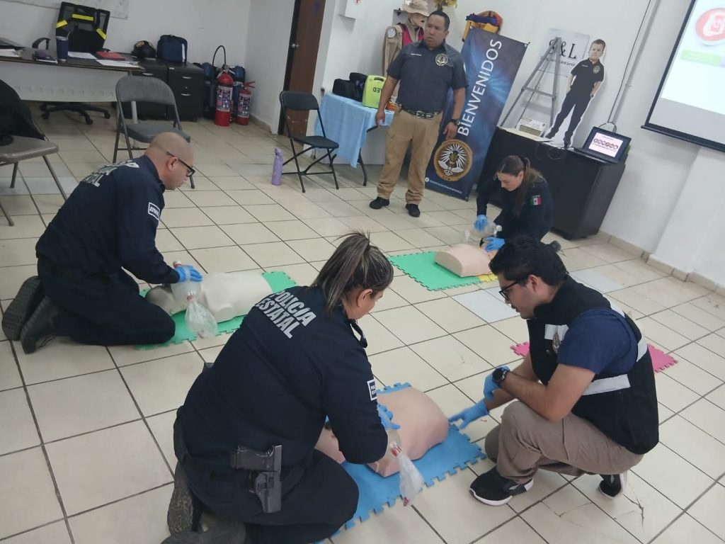 Paramédicos de la Policía Estatal De Seguridad Pública. (PESP) participaron en el curso Soporte Vital Básico para fortalecer el entrenamiento en RCP y otras habilidades de soporte vital cardiovascular por la asociación American Heart.