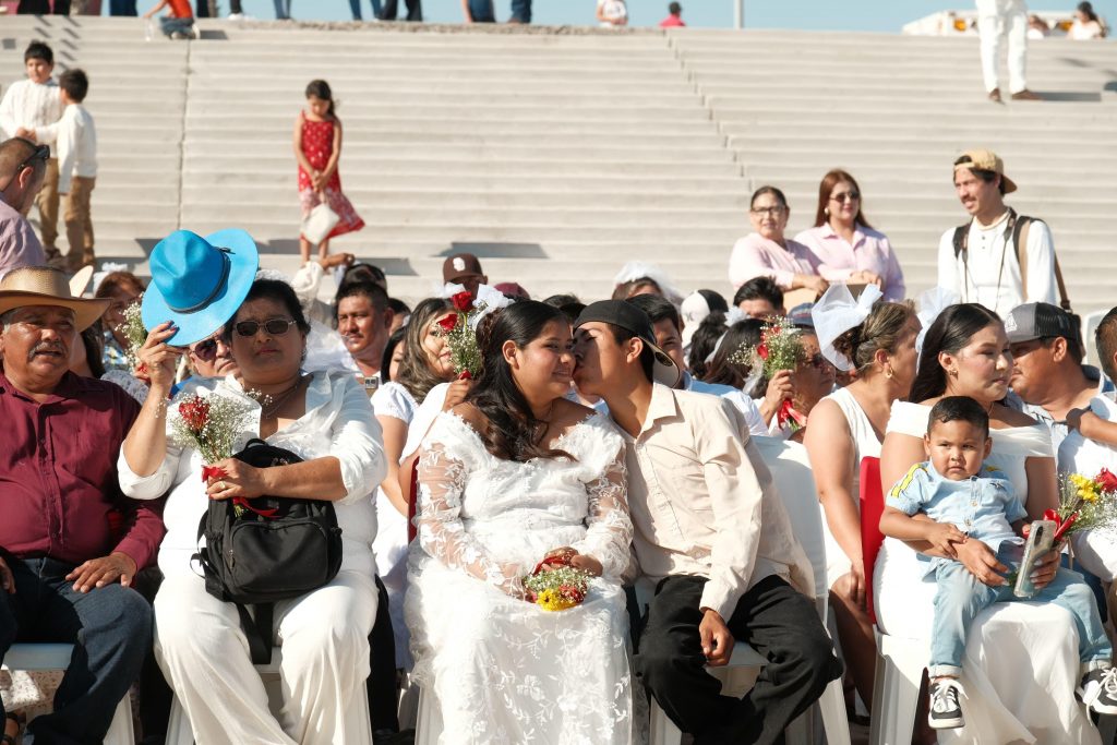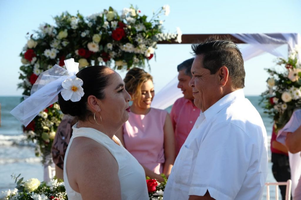 “Hoy no solo firman un acta, sino que fortalecen el tejido de nuestra comunidad. Ver a tantas parejas, desde jóvenes que inician un camino hasta compañeros de vida de muchos años, formalizar su amor frente a este mar, nos llena de esperanza. Que este documento sea el cimiento de hogares llenos de paz y que su unión sea el ejemplo de fortaleza para sus hijos y para todo Huatabampo”, apuntó.