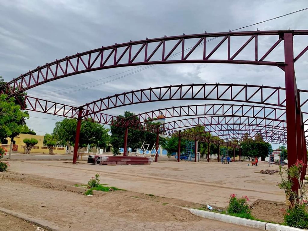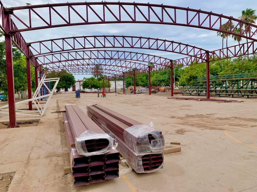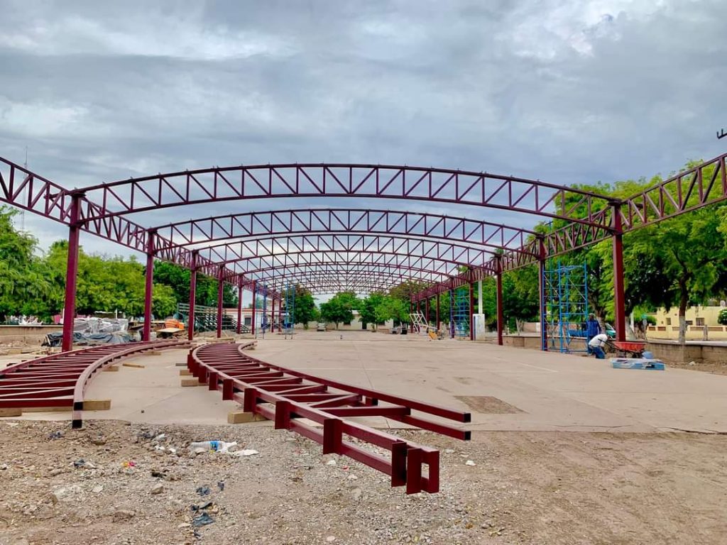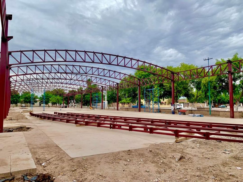 Etchojoa, Son.- El Gobierno Municipal a través de CECOP, trabaja en la construcción de un domo de 80 x 20 metros, que será utilizado por las y los etchojoenses para eventos cívicos, deportivos, artísticos y culturales.