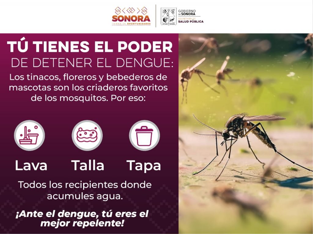 Sonora; 12 de diciembre de 2025.- Seguir las recomendaciones de la Secretaría de Salud Sonora es una gran opción para combatir la proliferación e incubación del mosco transmisor.