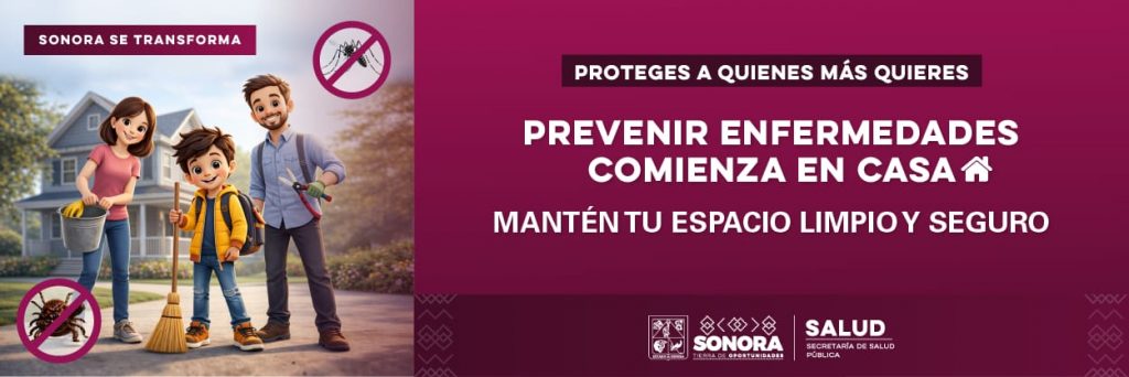 Sonora.- 12 de abril de 2026.- 🦟 La prevención es importante para prevenir la aparición del mosquito transmisor del “Dengue”; mantener limpios los espacios de nuestra vivienda, vaciar y voltear los recipientes que acumulen agua innecesariamente y tapar los que la contengan para el uso diario, son medidas básicas para reducir la aparición del Dengue.