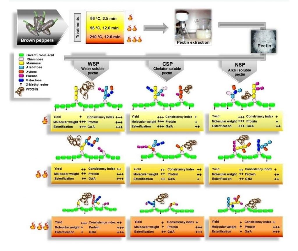 A través de dicha investigación diseñó una metodología de extracción y caracterización fisicoquímica de polisacáridos estructurales de la pared celular vegetal, con la finalidad de obtener distintas fracciones pécticas proveniente de chile jalapeño no comercializado a consecuencia del estado de maduración.