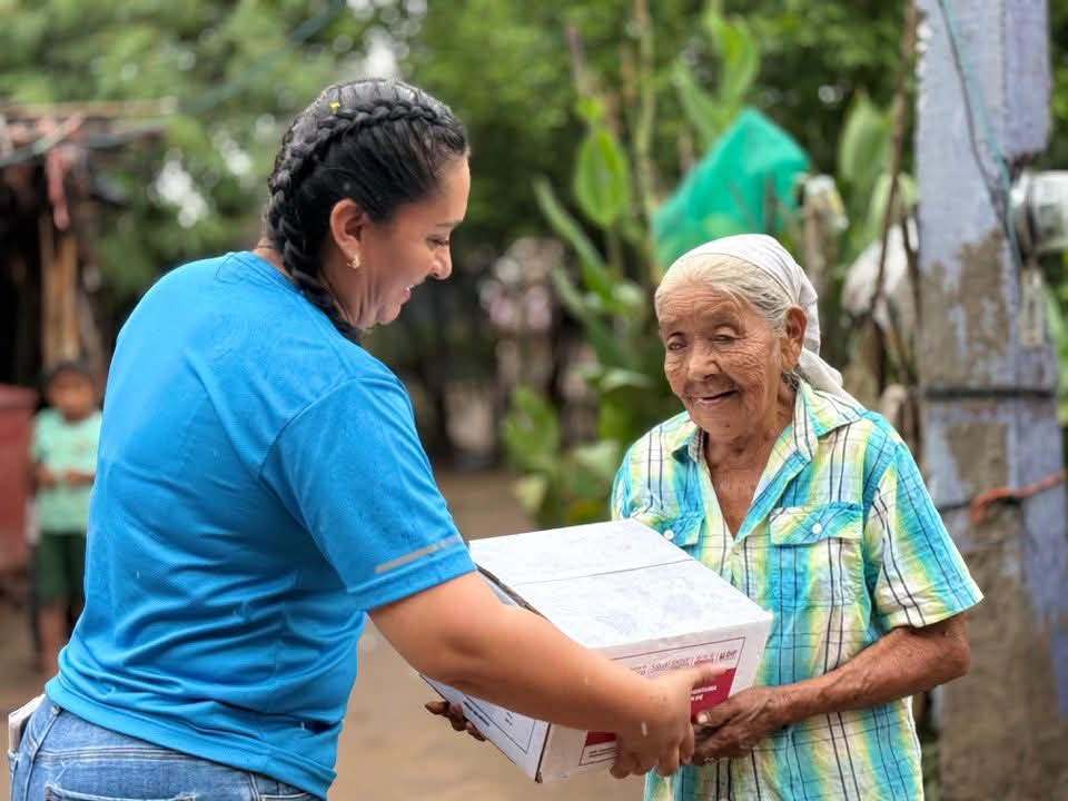 Durante la visita se entregaron canastas alimentarias, agua y diversos apoyos, priorizando a los hogares que se encuentran en situación de mayor vulnerabilidad.