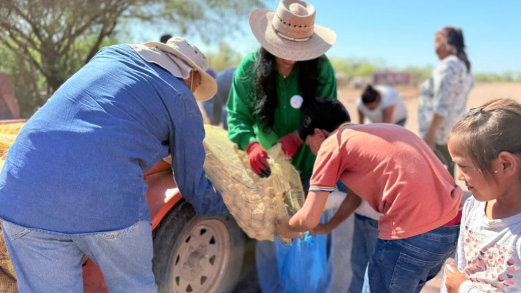 Etchojoa, Son.- La Presidenta del Sistema DIF Etchojoa, Karla Minú Cano Arce, encabezó una jornada de apoyo alimentario en diversas comunidades rurales, donde se llevó a cabo la entrega de papa a familias de Las Mayas, Mayocahui, Chichivito de Buaysiacobe, entre otras.