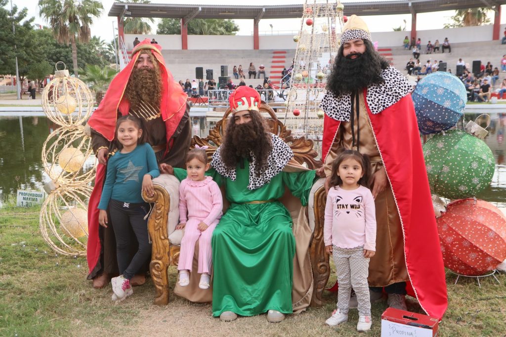 Navojoa, Sonora, 6 de enero 2026.- De la alegría y armonía fortificante del Día de Reyes disfrutaron este martes alrededor de 9 mil personas en el Parque Infantil , donde fue repartida una rosca de 40 metros, dulces, hot dogs, refrescos, y la rifa de más de un centenar de bicicletas, festejo presidido por el alcalde Jorge Alberto Elías Retes y la presidenta del Sistema DIF, Luz Argel Gaxiola de Elías.