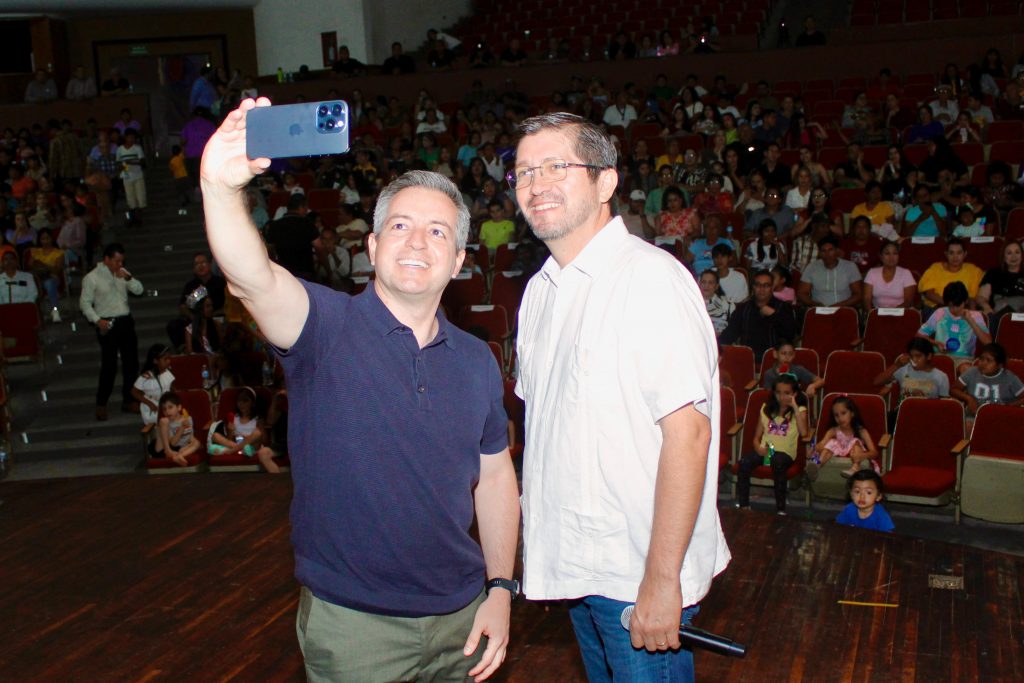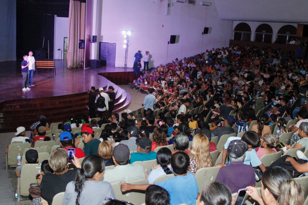 Navojoa, Sonora; 25 de agosto de 2025.- Con gran entusiasmo y la asistencia de decenas de familias, se presentó en el Teatro Auditorio Municipal Romeo Gómez Aguilar la obra de teatro “El Misterio de la Catota Azul”, impulsada por el diputado Omar Del Valle Colosio, con el propósito de generar conciencia sobre el uso responsable y el cuidado del agua.
