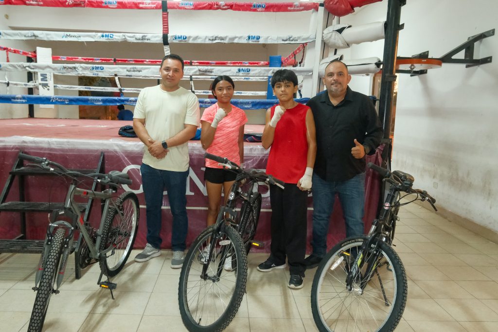 En representación del alcalde, estuvo presente el director de Educación y Cultura, Martín Arturo Villegas Ortíz; los jóvenes boxeadores que recibieron las bicicletas fueron Yhoana Corral y Gerardo Romo.