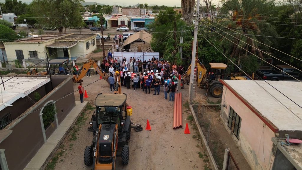 Navojoa, Sonora, 15 de agosto 2025.- Como prueba de cumplimiento al compromiso pactado durante el programa “Bienestar en tu colonia”, el alcalde Jorge Alberto Elías Retes dio este viernes el banderazo de inicio a la rehabilitación integral del sistema de drenaje y agua potable en la Mocúzarit, a cargo de Oomapasn, en más de 12 kilómetros lineales con tuberías de PVC hidráulicas y sanitarias.