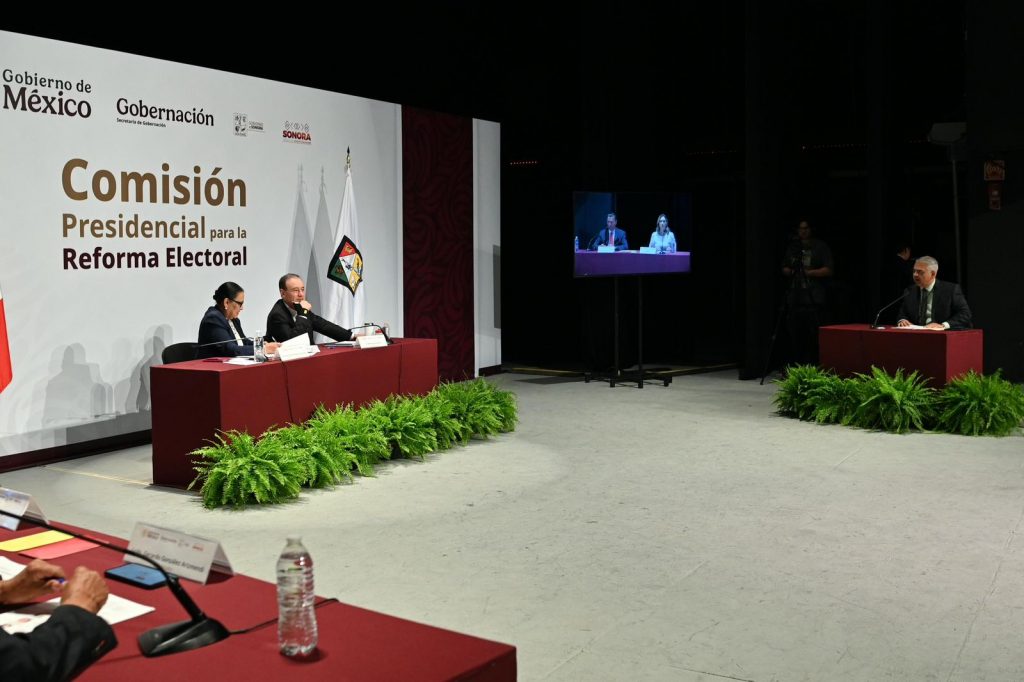 Hermosillo, Sonora; 8 de octubre de 2025.- Con la finalidad de conocer las opiniones y propuestas sobre temas específicos de los diferentes sectores de la sociedad para la construcción de un proyecto de Reforma Electoral, acorde a las condiciones actuales en México, el gobernador Alfonso Durazo Montaño y la secretaria de Gobernación, Rosa Icela Rodríguez Velázquez, encabezaron los trabajos de la Comisión Presidencial para la Reforma Electoral.
