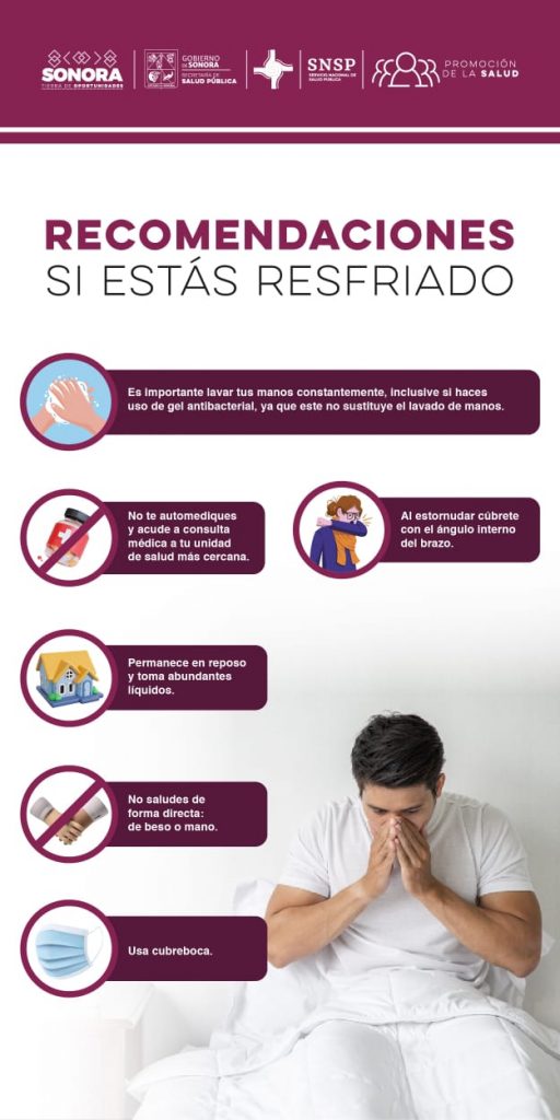 Sonora; 13 de febrero de 2025.- Si tienes síntomas de un resfriado acude a la clínica de salud más cercana y aplica las medidas de salud recomendadas por la Secretaría de Salud Sonora.