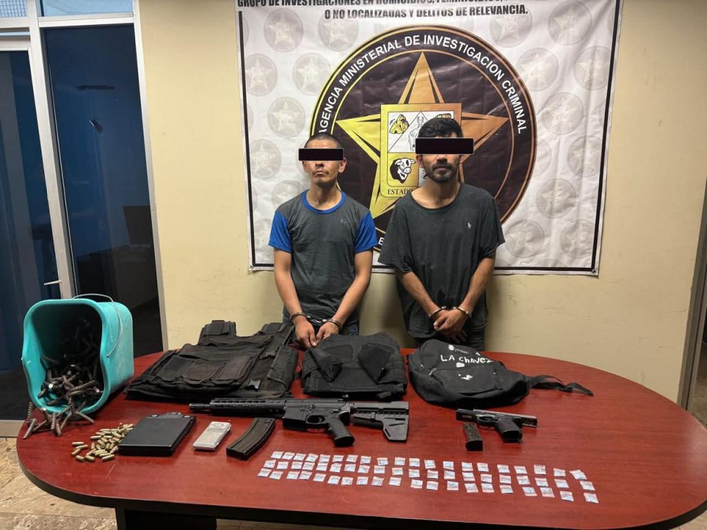 Durante la intervención efectuada por personal de la Agencia Ministerial de Investigación Criminal (AMIC) y de la Secretaría de la Defensa Nacional (DEFENSA), se les aseguraron en flagrancia delictiva 61 envoltorios con metanfetamina con un peso total de 11.010 gramos, artefactos metálicos “ponchallantas” y equipo electrónico de uso restringido para interceptar o interferir comunicaciones de cuerpos de seguridad.