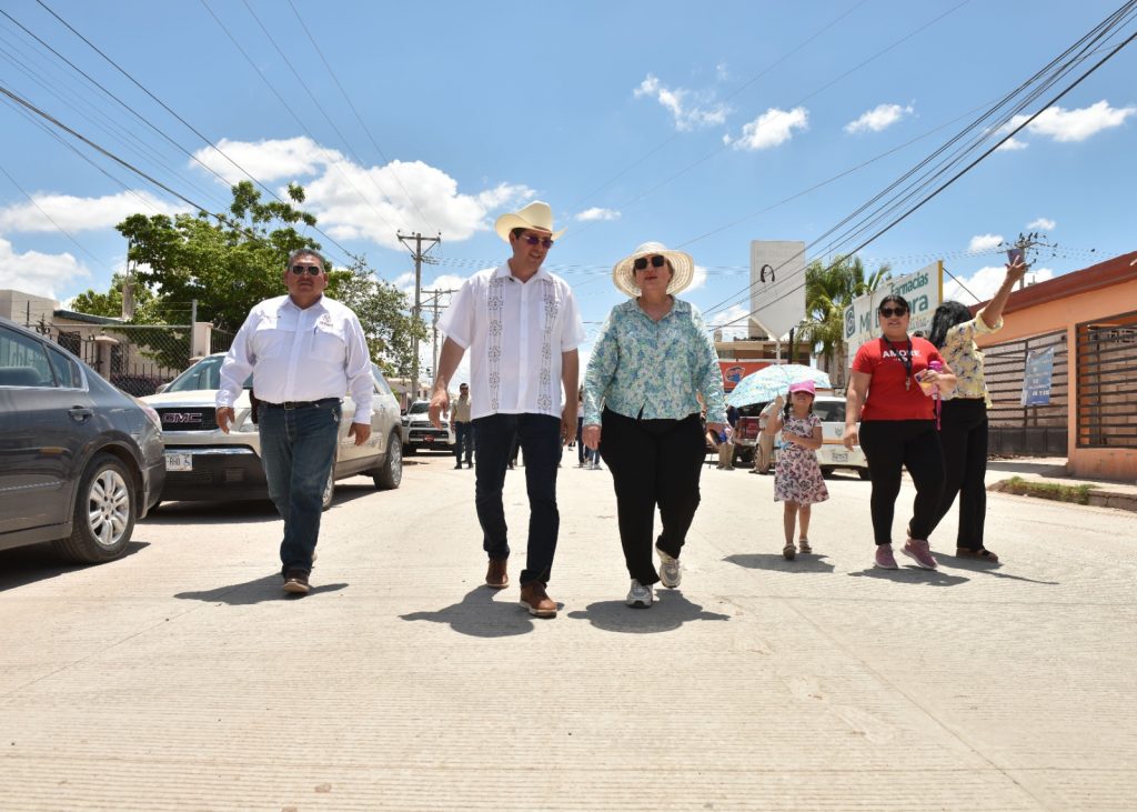 Navojoa, Sonora, 4 de julio 2025.- La rehabilitación con concreto hidráulico de 2 cruceros viales y un tramo de 120 metros, con un total de 1,815 metros cuadrados de concreto hidráulico en los tres puntos, además de bacheo, nuevas líneas de drenaje y tomas domiciliarias, cuya inversión ascendió a más de 4 millones de pesos, entregó hoy el alcalde Jorge Alberto Elías Retes, tras destacar que el 2025 será muy bueno para el municipio en la continuidad a obras de infraestructura urbana, agua potable, drenaje y mejoramiento a los servicios públicos.
