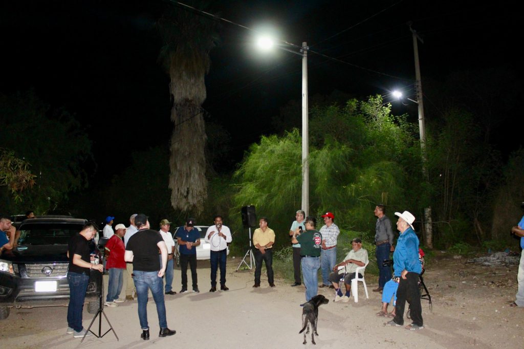 Etchojoa, Son.- Con una inversión de 336 mil 959 pesos provenientes del Fondo de Aportaciones para la Infraestructura Social (FAIS), el Ayuntamiento de Etchojoa, que preside el Ing. Luis Arturo Robles Higuera, a través de las Direcciones de Obras Públicas y Planeación, entregó la ampliación del sistema de alumbrado público en el acceso a la comunidad Las Mil Hectáreas, perteneciente a la Comisaría de Buaysiacobe.