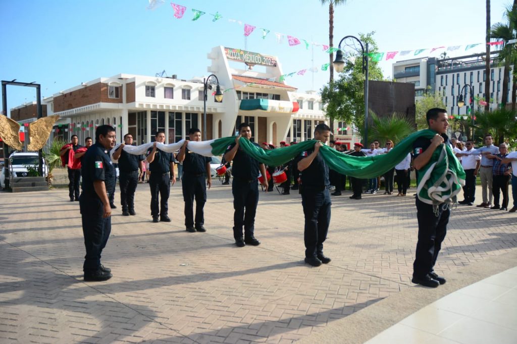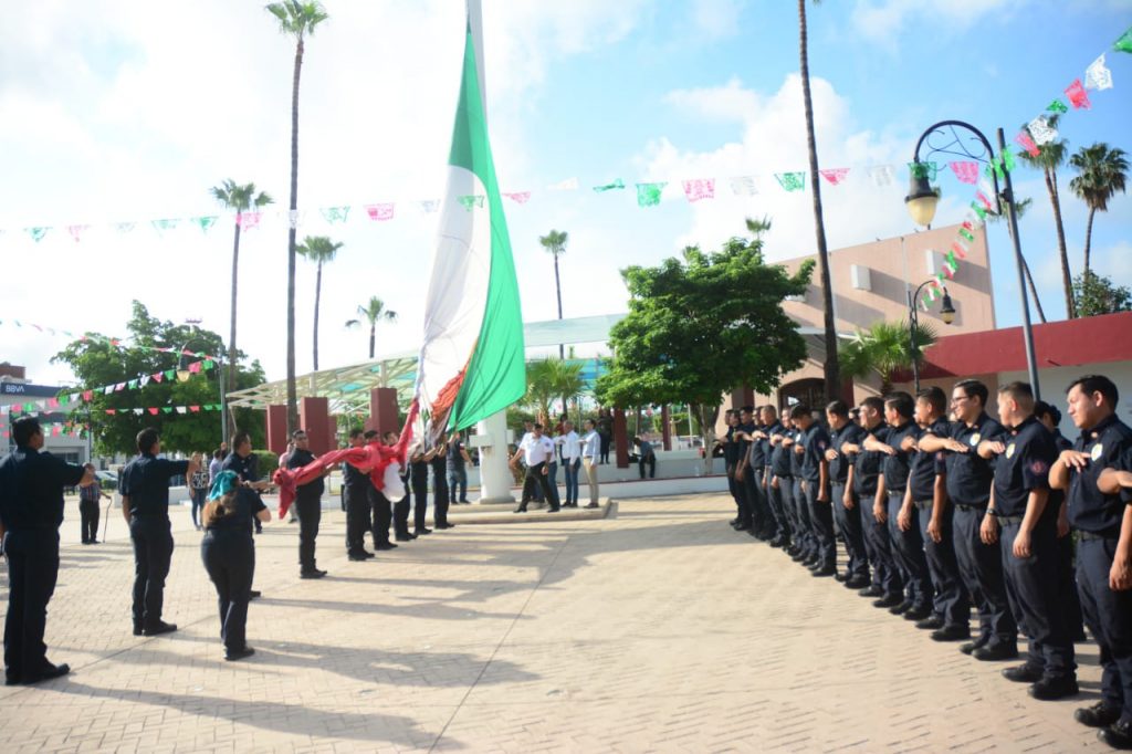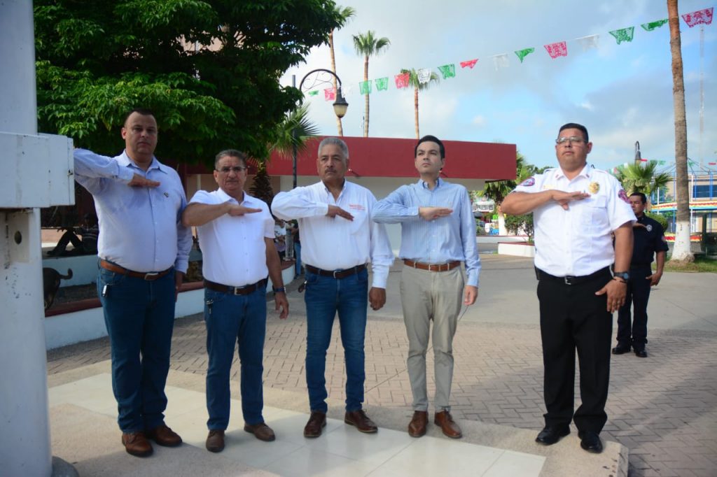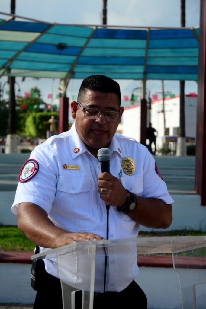 El evento, en la Plaza 5 de Mayo, estuvo presidido en guardia oficial por el Departamento de Bomberos, a cargo del primer comandante Jesús Edmundo Valdez Reyes, acompañado por el secretario Rafael Rodríguez Sánchez, quien en representación del alcalde Jorge Alberto Elías Retes agradeció a bomberos, regidores, el director de Educación y Cultura, Obed Tellechea, y líderes sindicales de las secciones 28 y 54 del SNTE su asistencia.