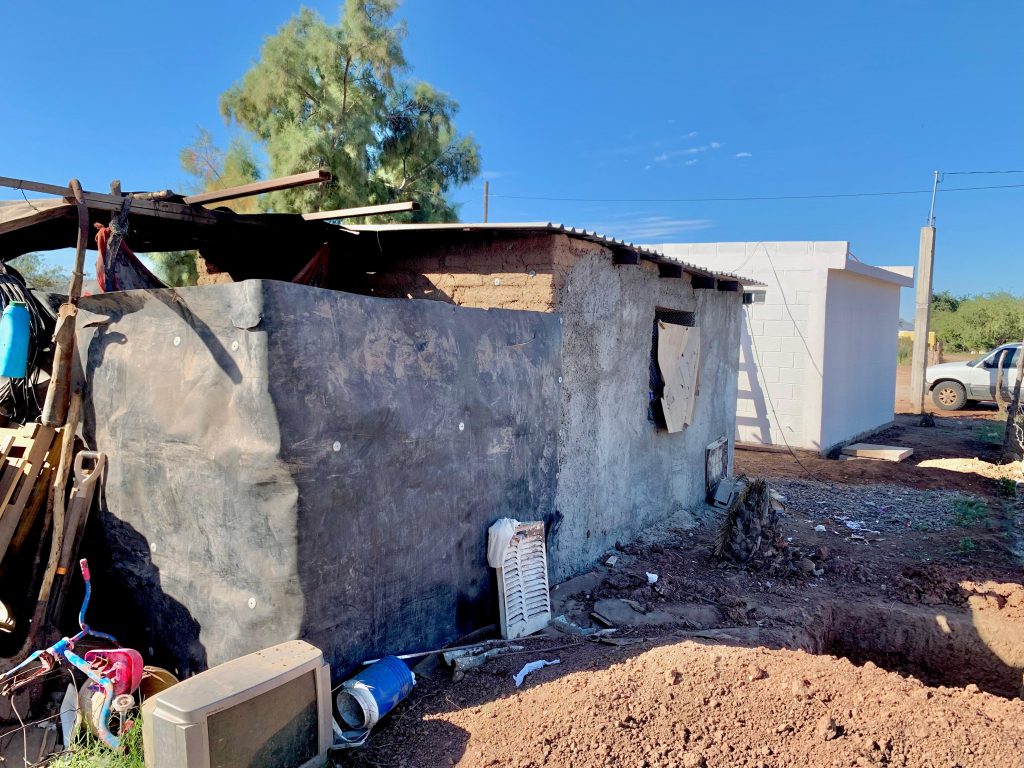 Junto a su esposo Luciano Aguilar Buitimea, trabajador de campo y carpintero, y sus dos hijos, fue beneficiada con una acción de vivienda impulsada por el Gobierno Municipal de Etchojoa, como parte de un programa que prioriza el bienestar de quienes más lo necesitan.