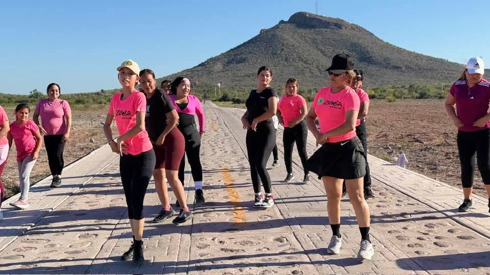 Etchojoa, Buaysiacobe.- Se lleva a cabo colaboración de Zumba entre mujeres de Zumba de Buaysiacobe, la Regidora Mariana Argüelles, creadora de contenido Keyla Michelle y el Instituto Etchojoense de la Juventud.