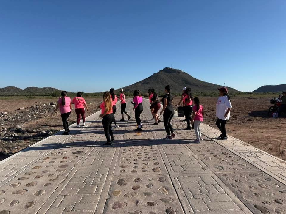La regidora Mariana Argüelles del H. Ayuntamiento de Etchojoa, lleva a cabo una actividad física por medio de las mujeres de Zumba de Buaysiacobe en las faldas del Cerro del Bayajorit, donde se convivio para fortalecer el valor de la mujer.