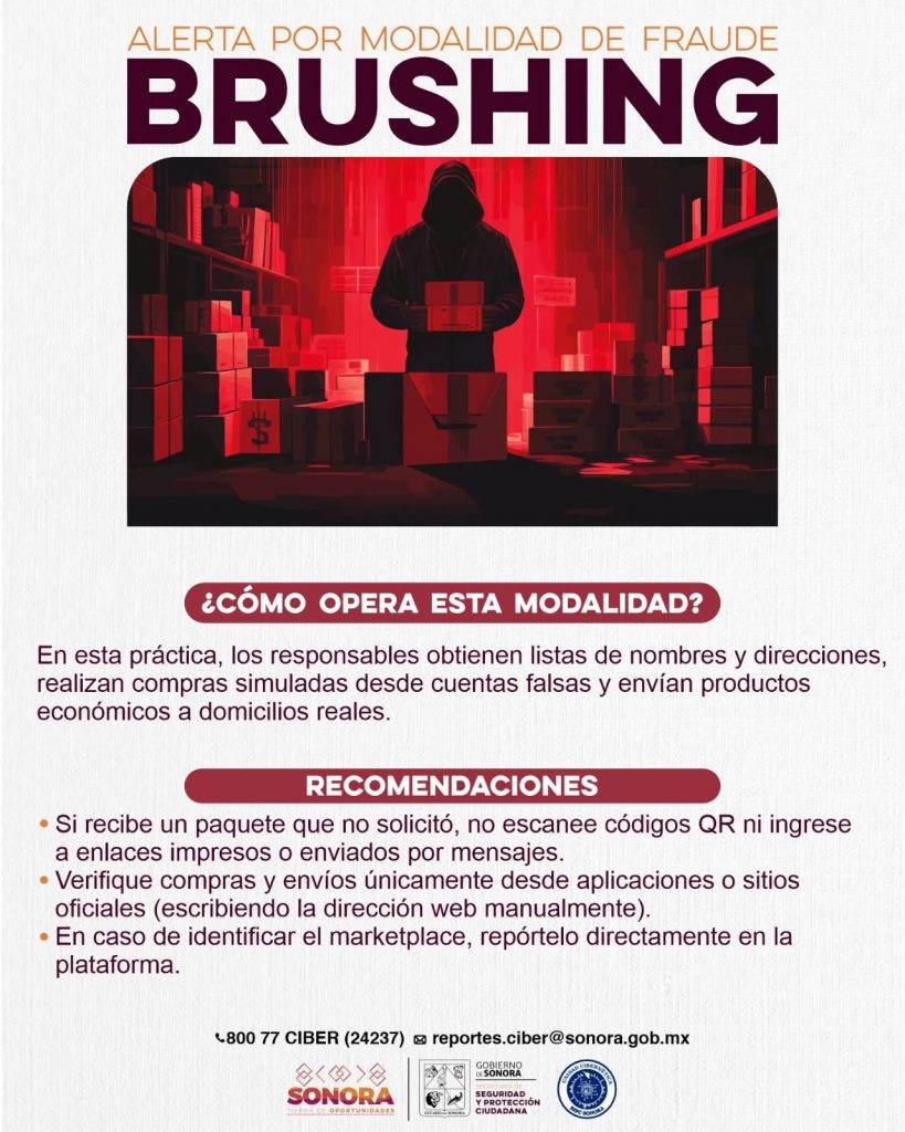 La Unidad Cibernética SSP Sonora, informa a la ciudadanía sobre una modalidad de fraude conocida como #Brushing, que consiste en el envío de paquetes no solicitados a domicilios reales utilizando datos personales sin consentimiento.