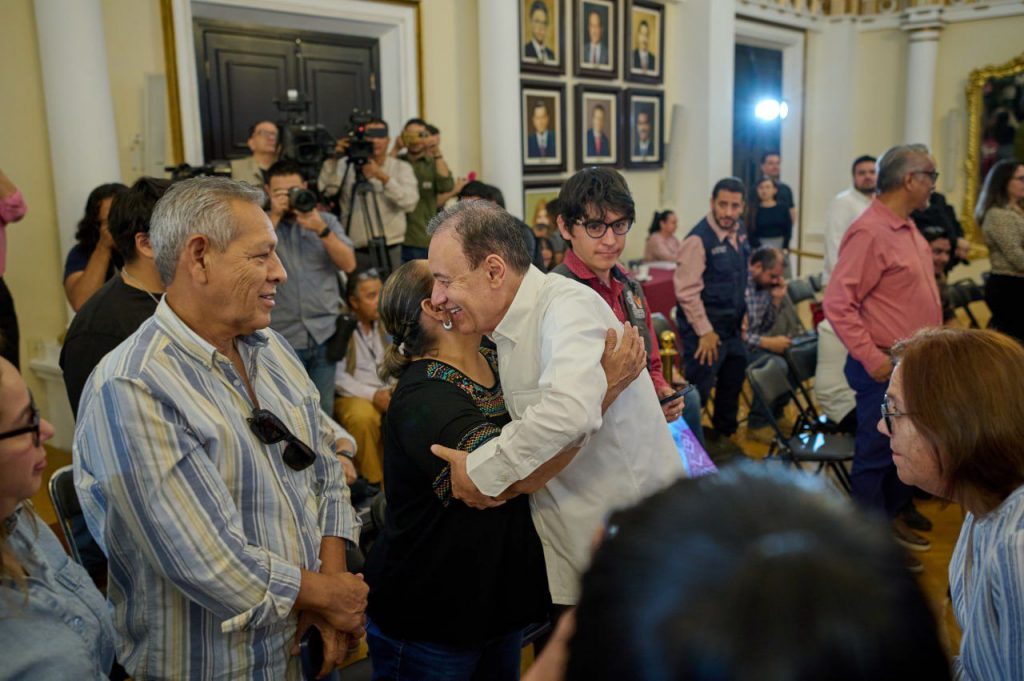 El gobernador Alfonso Durazo estuvo acompañado por Paulina Ocaña, jefa de la Oficina del Ejecutivo Estatal, Lyzeth Salcedo Salinas, comisionada Ejecutiva Estatal de Atención a Víctimas, David Fernando Soto Alday, secretario del Trabajo, Zulema Boneo Silva, coordinadora estatal del Sistema SALVA, Sheila Hernández Alcaraz, titular de la Secretaría de las Mujeres y Lizeth Vázquez, directora general del Sistema DIF Sonora.