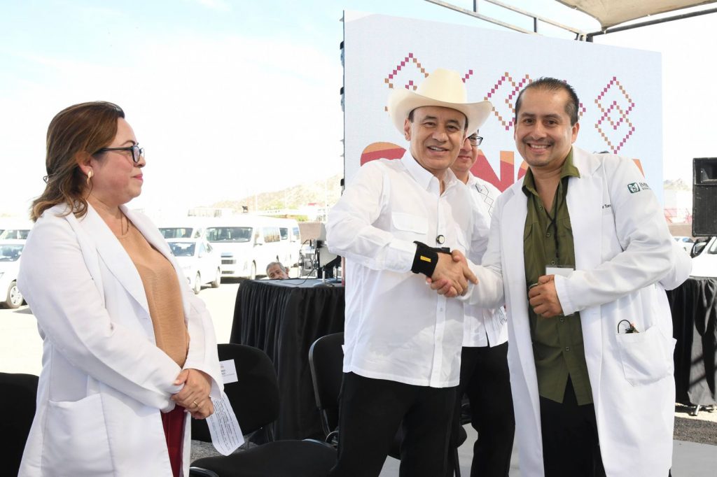 Durante el evento el mandatario estatal, acompañado de Gabriela Nucamendi Cervantes, coordinadora federal del IMSS-Bienestar en Sonora y José Luis Alomía Zegarra, secretario de Salud, subrayó que esta acción representa un paso fundamental en la consolidación del sistema de salud en la entidad, al reforzar la presencia de los equipos médicos y directivos en las 10 regiones operativas: San Luis Río Colorado, Caborca, Nogales, Moctezuma, Ures, Hermosillo, Guaymas, Cajeme, Navojoa y Huatabampo.