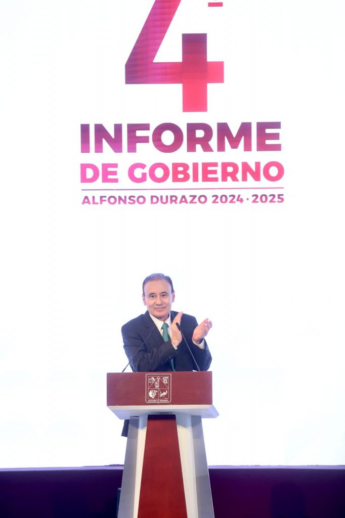 Hermosillo, Sonora; 13 de septiembre de 2025.- Con resultados que consolidan la transformación de Sonora en vivienda, salud, infraestructura, educación, energía, desarrollo urbano y bienestar social traducido en reducción histórica de la pobreza, el Gobernador Alfonso Durazo Montaño presentó su Cuarto Informe de Gobierno, en el que garantiza que el estado avanza a paso firme hacia un futuro más próspero, justo y de mayores oportunidades para las y los sonorenses.