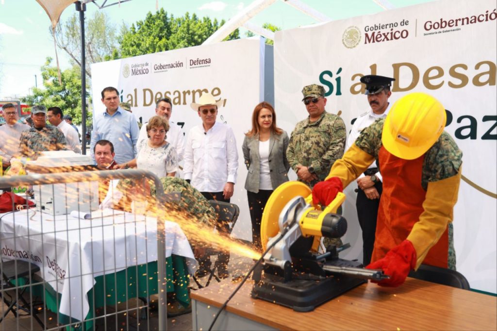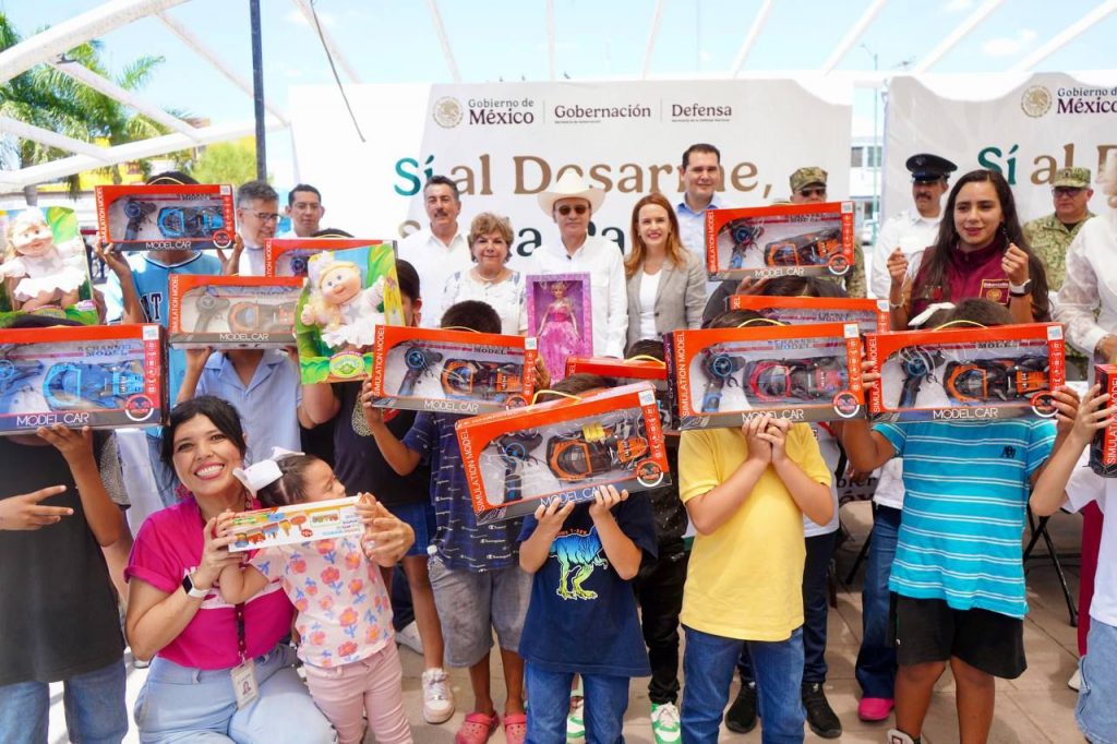 Con el respaldo de la Secretaría de Gobernación, durante su gira de trabajo por Cajeme, el mandatario sonorense destacó que, estas acciones tienen la finalidad de disminuir los delitos de alto impacto asociados a las armas de fuego, y detalló que a través del programa “Sí al Desarme, Sí a la Paz” se beneficia directamente la formación de niñas y niños con el canje de juguetes bélicos por didácticos. La ciudadanía en general podrá canjear armamento y municiones de manera anónima por dinero en efectivo en los centros que se establecieron en la plaza de la Catedral Sagrado Corazón de Jesús, ubicada en calle Sonora 166, colonia Centro.