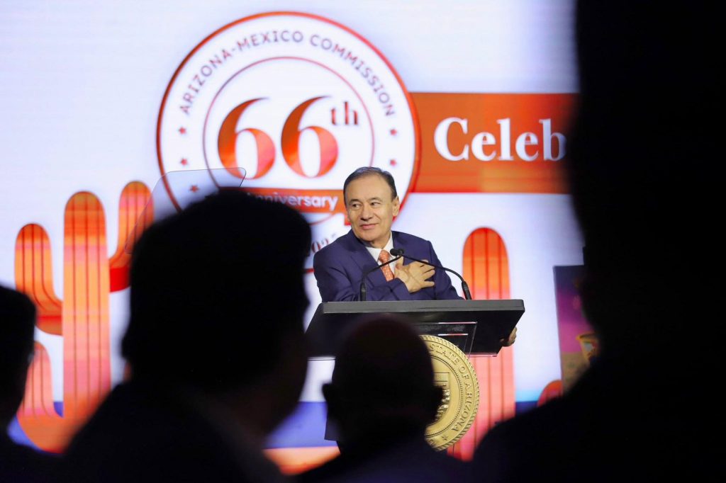 Phoenix, Arizona; 27 de junio de 2025.- Bajo la premisa de celebrar la relación comercial entre ambos estados fronterizos, que ha hecho del entendimiento binacional una política de Estado, el Gobernador Alfonso Durazo Montaño y la gobernadora Katie Hobbs reafirmaron los lazos de cooperación y desarrollo transfronterizo que se han forjado a lo largo de 66 años de la Comisión Sonora–Estados Unidos, Arizona–México, bajo el lema “Celebrando nuestro legado. Definiendo nuestro futuro”.