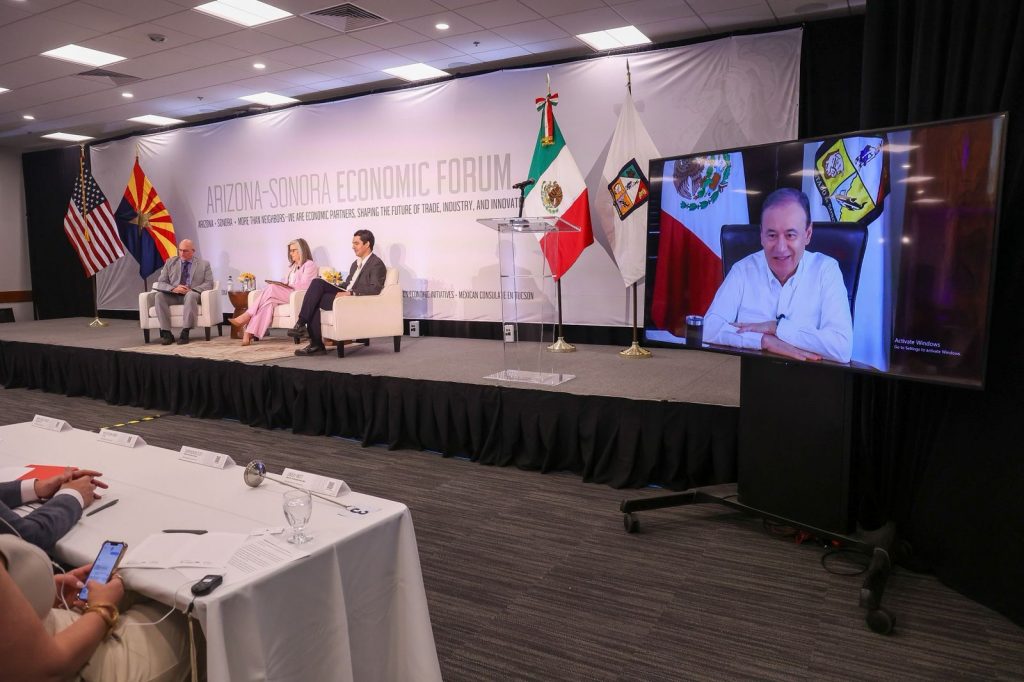 - El Mandatario sonorense, durante la Arizona–Sonora Economic Forum, resaltó que ambos estados comparten más que una frontera; comparten la unión de voluntades de transformar las comunidades con inversión, innovación y desarrollo humano, fortaleciendo los lazos que abren nuevas oportunidades de crecimiento económico y social para ambas regiones.