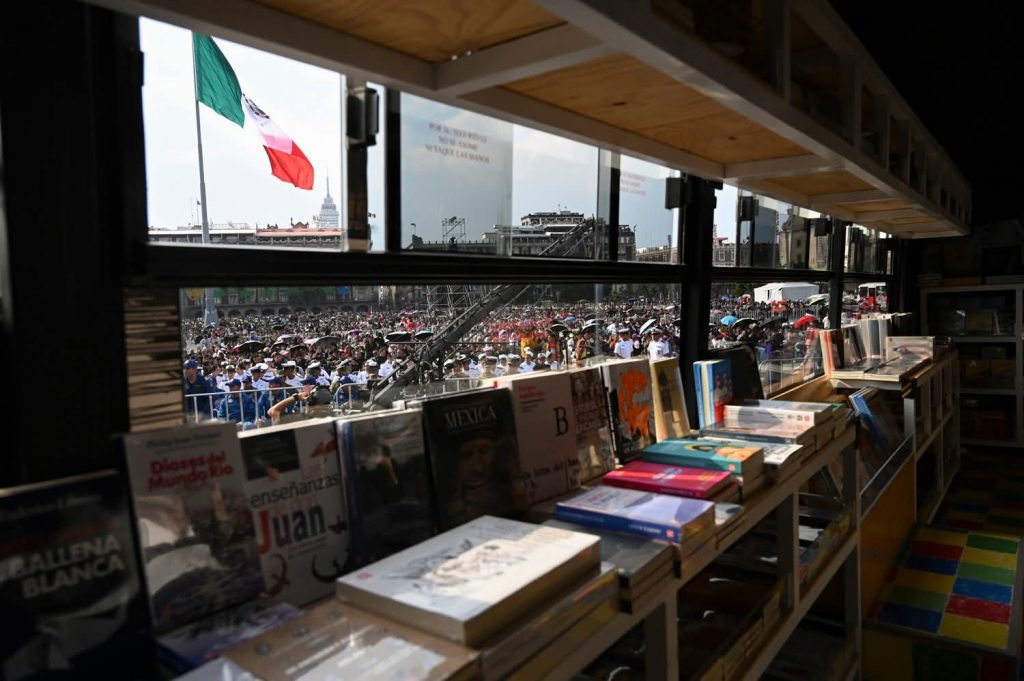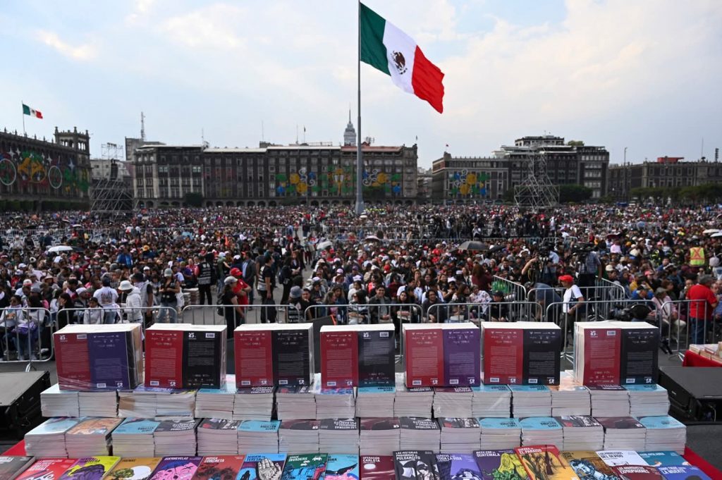 En el Zócalo de la Ciudad de México, la presidenta Claudia Sheinbaum Pardo encabeza la entrega gratuita de 2.5 millones de libros de la colección 25 para el 25, que impulsa el Fondo de Cultura Económica para jóvenes mexicanos y de América Latina.