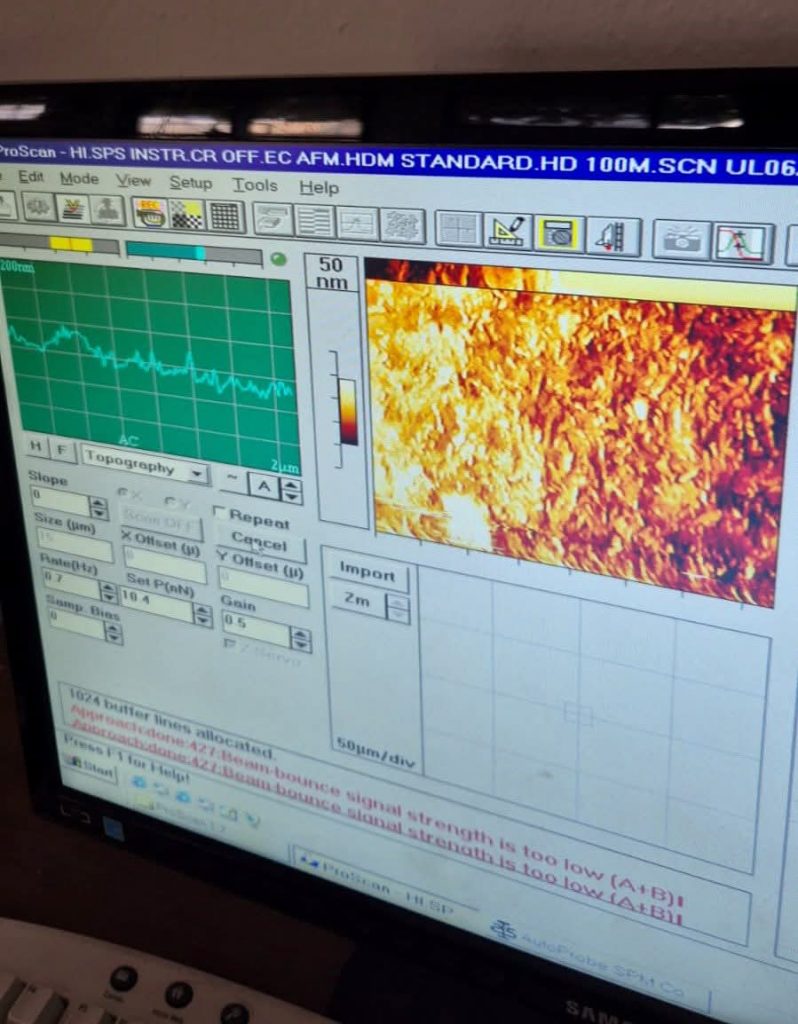 Por primera vez, la UES cuenta con un Microscopio de Fuerza Atómica (AFM por sus siglas en inglés), instrumento que permite visualizar superficies a nivel atómico sin utilizar luz ni lentes, mediante una sonda ultrafina que genera imágenes tridimensionales y mide fuerzas de interacción a nanoescala.