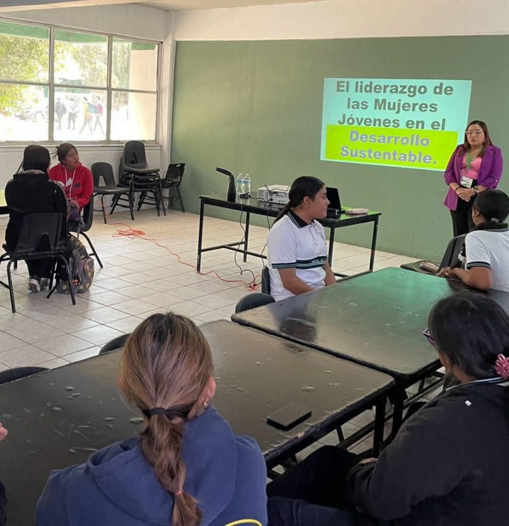 Etchojoa, Son.- Hoy se impartió la Conferencia en CBTA 97 “El Liderazgo de las Mujeres Jóvenes en el Desarrollo Sustentable”, por la Regidora Presidenta de la Comisión de Juventudes y Ecología, Mariana Argüelles Ramírez, acompañada por la coordinadora de Ecología del Instituto Municipal de la Juventud, María Buitimea Ramos.