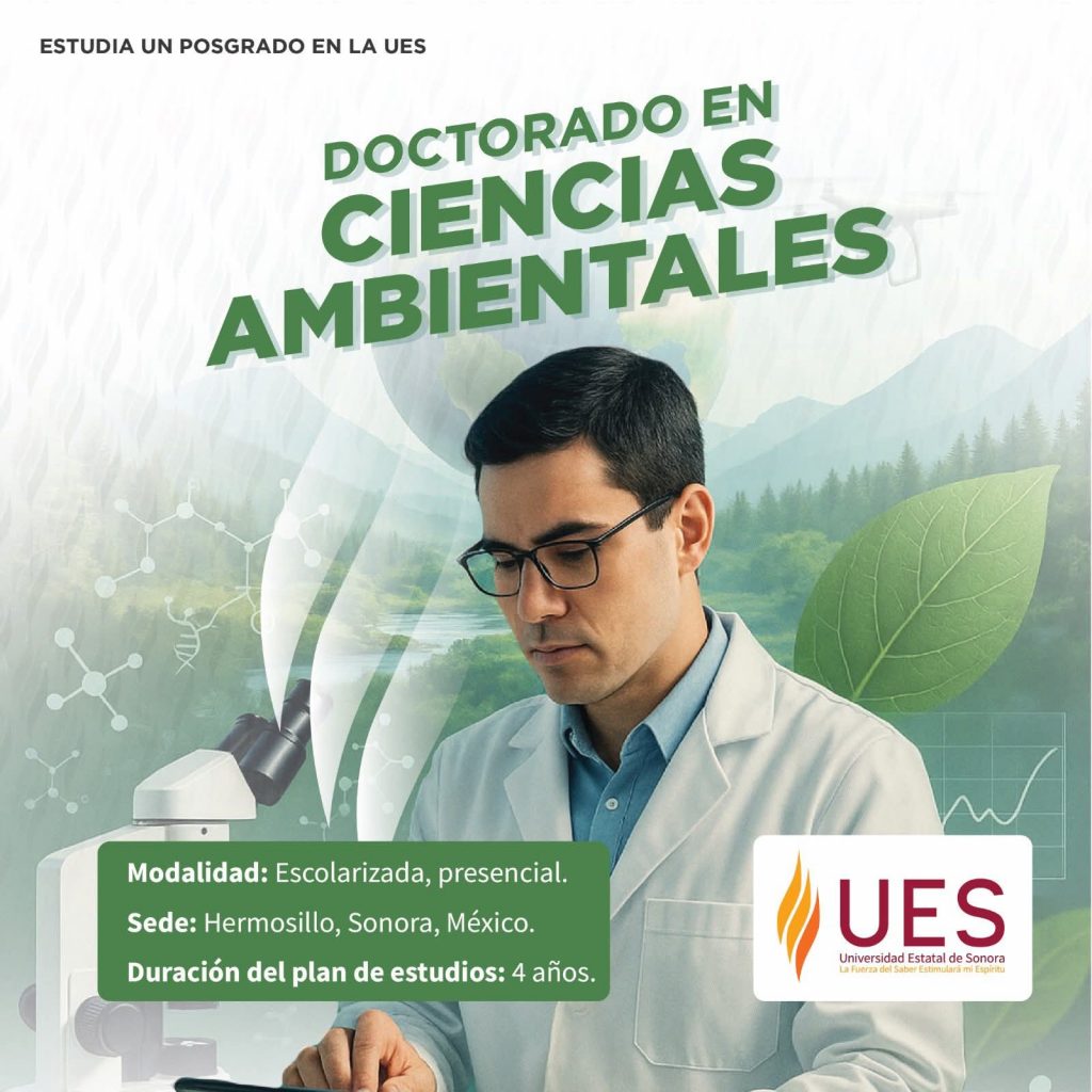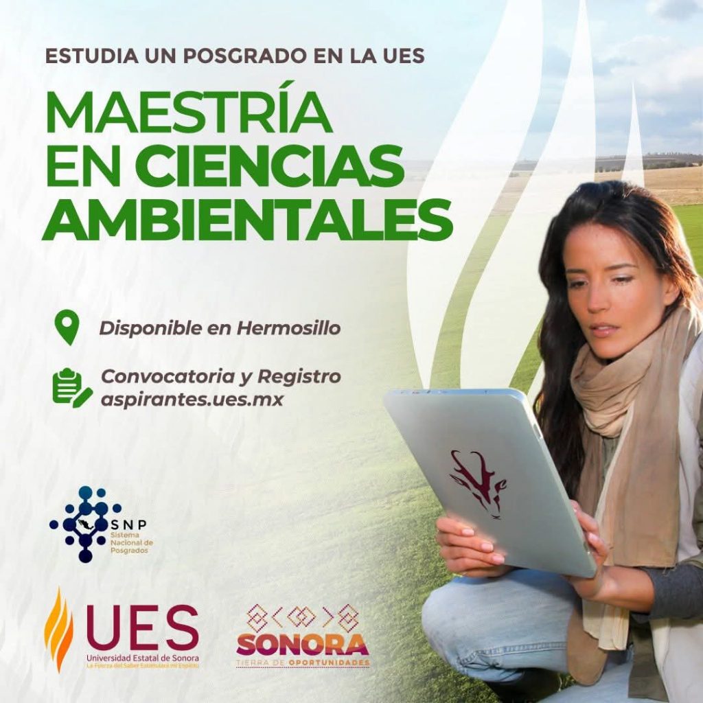 De acuerdo a lo informado por la Secretaría de Educación y Cultura, entre la oferta destaca el Doctorado en Ciencias Ambientales, impartido en la #UES Hermosillo, dirigido a egresados de maestría afín con capacidad de análisis, manejo de TICs, dominio del inglés e interés en investigación multidisciplinaria. Asimismo, la Maestría en Ciencias Ambientales, también en UES Hermosillo, está orientada a licenciados con habilidades para integrar conocimientos científicos y tecnológicos enfocados en el manejo sostenible de recursos naturales.